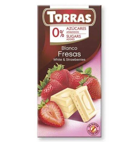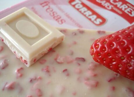Якісний Іспанський шоколад. Білий зі шматочками сублімованої полуниці. Данний шоколад не містить доданого білого цукру.