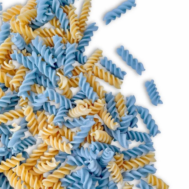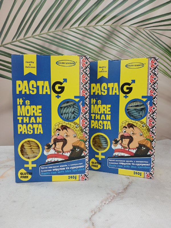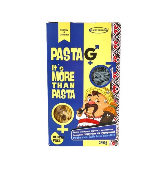 Макаронные изделия, имеющие очень хорошую патриотическую окраску. Изготовлены из рисовой муки, экстракта голубой спирулины и куркумы. Очень полезны. Рекомендуется готовить по следующему рецепту: в подсоленный кипяток добавить макароны с учетом 100 г на 0,5 л воды, по желанию добавить растительное масло. Варить 5-7 минут.