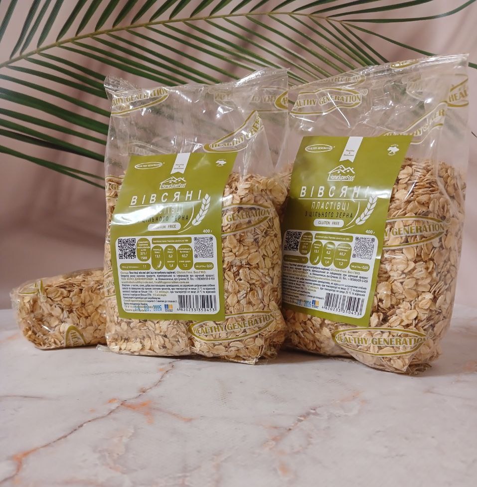 Цельнозерновые овсяные хлопья, нуждающиеся в варке. Можно варить на воде, с молоком, с сухим молоком, с любым растительным молочком. Время варки 7 минут. Для завершенного вкуса можно добавить каплю гхи, а также ягоды или сухофрукты с орешками.
